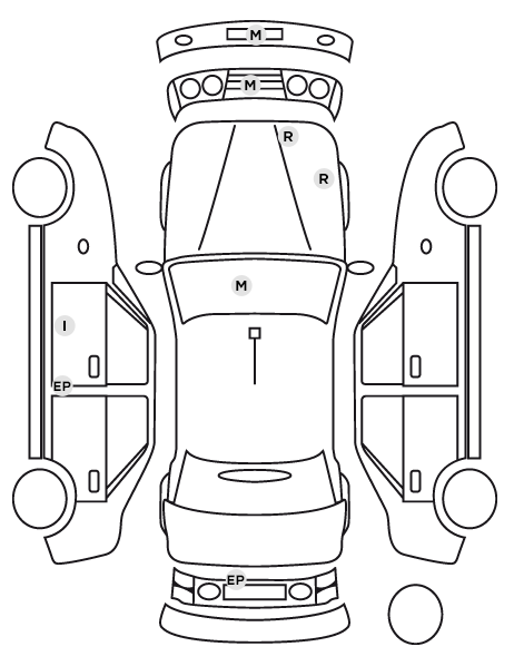 | Vitrage Privacy : lunette AR, vitres de portières AR et vitres latérales AR surteintées |