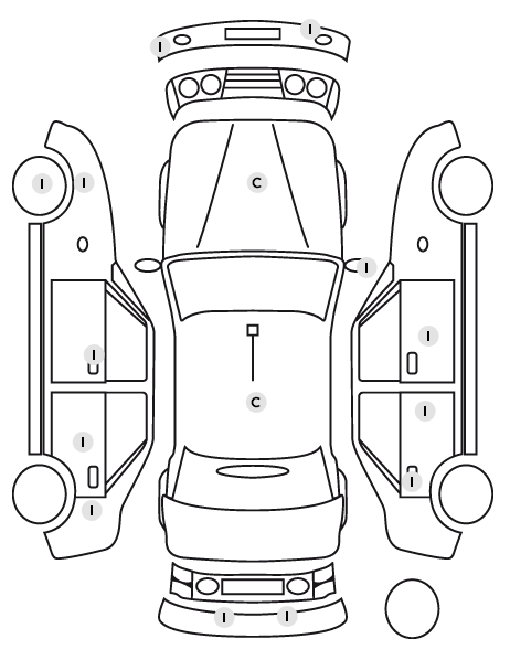 | Visio Park 1: Caméra de recul avec restitution sur l'écran tactile d'une vue AR et d'une vue de dessus de l'environnement AR du véhicule + Aide graphique et sonore au stationnement AR |