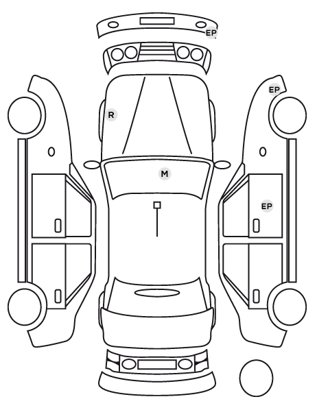 | Visiopark 1 : Caméra de recul avec restitution sur l'écran tactile d'une vue arrière 180°, et d'une vue de dessus de l'environnement arrière du véhicule |