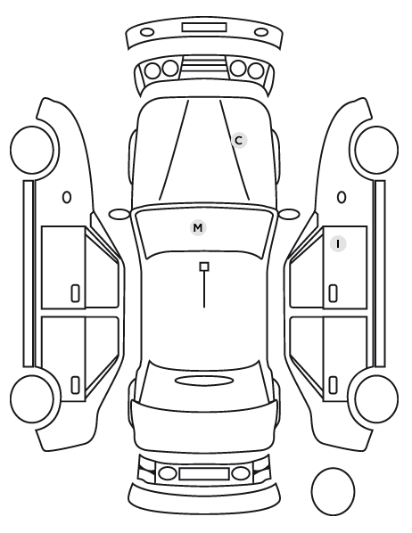 | Visio Park 1: Caméra de recul avec restitution sur l'écran tactile d'une vue AR et d'une vue de dessus de l'environnement AR du véhicule + Aide graphique et sonore au stationnement AR |