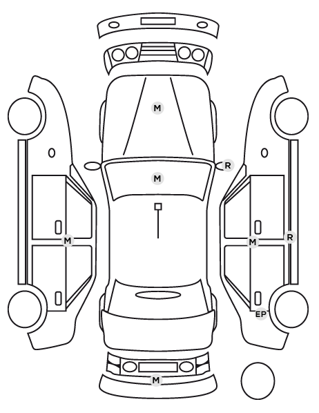 | Pack Parking 360° Easy park assist et aides au parking AV, AR et latérale, caméra 3D vision 360°, rétroviseurs extérieurs électriques à mémoire, dégivrants, rabattables automatiquement, lumière d’accueil au seuil avec projection logo |