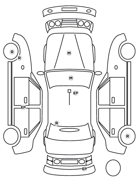 | Pack Toit Noir: Rétroviseurs extérieurs peints en Noir Uni, Rétroviseurs extérieurs peints en Noir Intense, Vitres AR et lunette AR surteintées à 65 %, Toit peint en Noir Intense, Toit peint en Noir Uni |