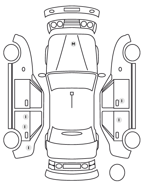 | Aide au stationnement AV/AR avec signaux sonores et visualisation de la distance des obstacles sur l'écran |